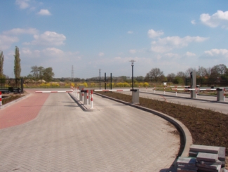 Ook voor het aanleggen van een oprit kunt u bij ons terecht. Hieronder ziet u een door ons gerealiseerde oprit.  | Inrit bij een bedrijventerrein met redsun klinkers. |