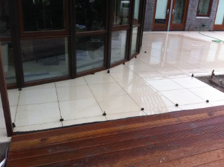 | | Vlonder terras met aansluitend ceramic tegels. |
