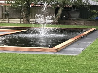 | Aangelegde vijver met fontein.