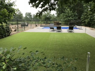 | Aanleg zwemabad. | | Zwembad met terras en mooi stukje kunstgras.