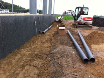 | |  | Aanleg hemelwaterafvoer bij een bedrijfshal. | | Aansluitpunt. |
